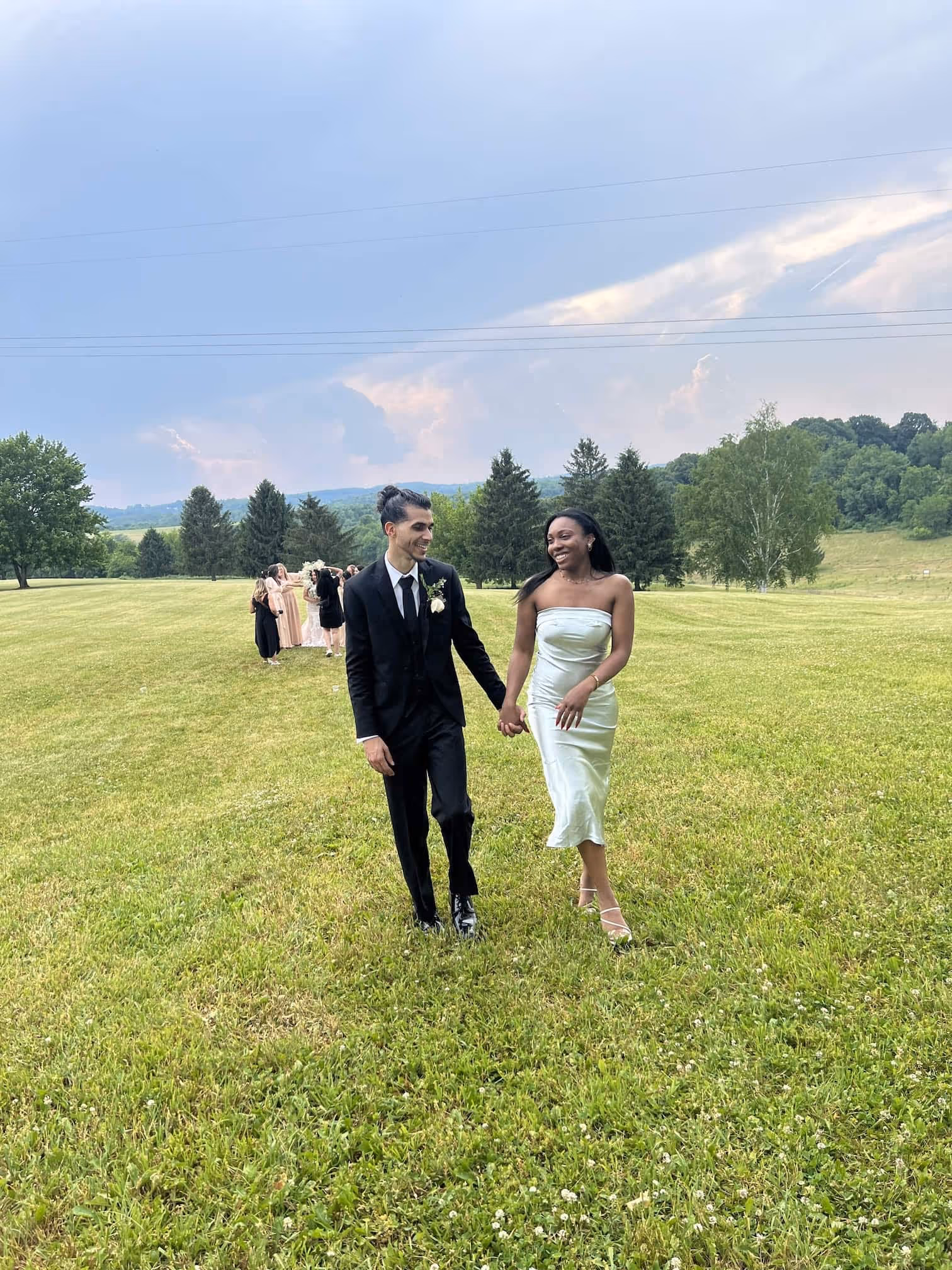 The ceremony will be outdoors with an indoor back-up (should it rain). Ceremony is on grass, so wear accommodating footwear.